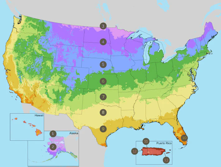 This map will guide you in selecting products ideal for your area. For specific questions about plants that thrive in your location, feel free to Contact Us - we're always ready to offer personalized advice.